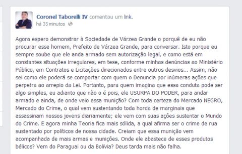 O prefeito de Várzea Grande, Walace Guimarães (PMDB), foi detido no aeroporto Marechal Rondon com 10 munições calibre 32 e encaminhado para a Central de Flagrantes em Várzea Grande. Ele ficou cerca de duas horas na delegacia para prestar esclarecimento.