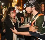 Manifestantes ligados ao Sindicato dos Médicos do Ceará vaiam médico cubano na saída do grupo de 79 médicos estrangeiros de aula inaugural (Foto: Jarbas Oliveira/Folhapress)