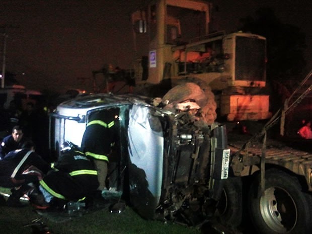 Neste momento, o caminhão colidiu com a caminhonete que vinha em sentido contrário e que era ocupada por três pessoas. O motorista, uma mulher e a criança ficaram presos nas ferragens e precisaram ser resgatados pelo Corpo de Bombeiros.