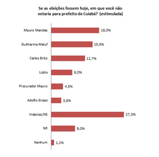 A soma de eleitores indecisos é de 9,3%. Os votos brancos e nulos somaram 1,3% e não responderam 2,5%. Foram ouvidos 600 eleitores de Cuiabá.