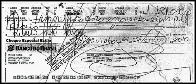 Confira cópia do cheque de Mendes, no valor de R$ 1.191.000,00, devolvido: