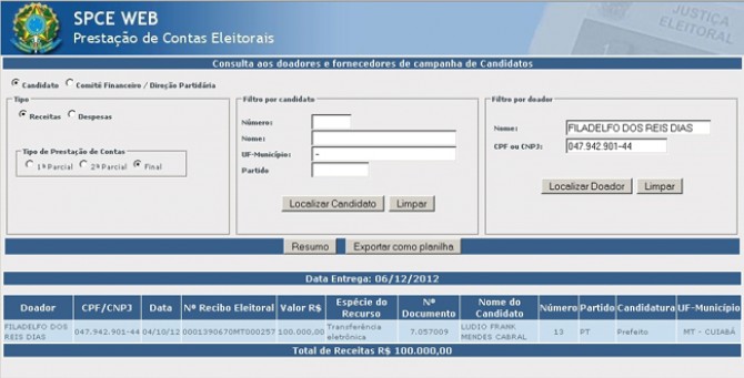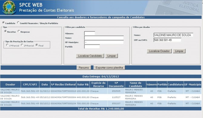 Confira as contribuições de ambos à campanha eleitoral: