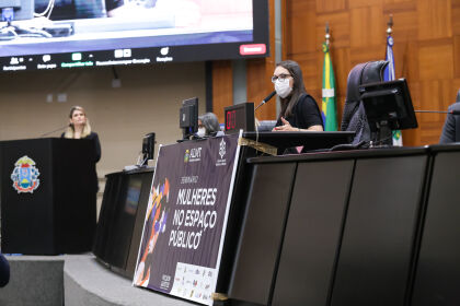 A deputada estadual Janaina Riva (MDB) abriu, nesta segunda-feira (21) o seminário ‘Mulheres no Espaço Público’, evento de entrega do relatório final da Câmara Setorial Temática da Mulher (CSTM). Segundo a parlamentar, o trabalho da CST começa a dar frutos com o levantamento das leis existentes de proteção e defesa da mulher e os apontamentos do que ainda falta ser implantado, para poder levar à sociedade mais informações sobre os recursos legais disponíveis no estado e nortear os deputados sobre o que ainda é necessário para combater a violência contra a mulher.