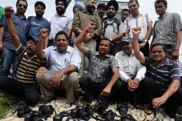 Fotojornalistas indianos protestaram, em Amristar, contra o estupro coletivo contra uma colega em MumbaiFoto: NARINDER NANU / AFP