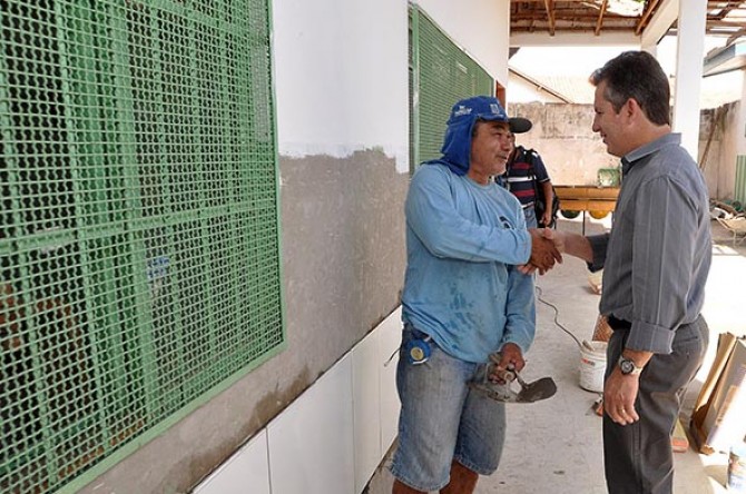 Na manhã desta sexta-feira (09) o prefeito Mauro Mendes acompanhado do secretário de Educação, Gilberto Gomes de Figueiredo, visitou a obra para conferir de perto o andamento da reforma.