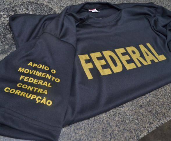 Polícia Federal apreendeu em Cuiabá 200 camisetas que imitavam uniforme da instituição e que seriam usadas nas eleições