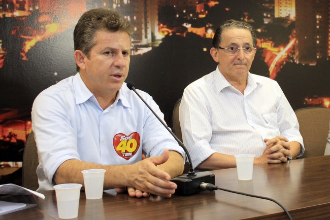| Mauro Mendes e Chico Galindo, prefeitos eleito e atual, respectivamente. |